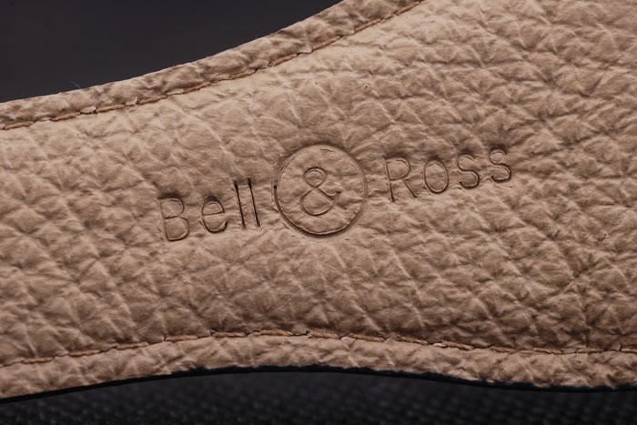 Bracelet: Black leather strap with heat embossed Bell & Ross stamp and BR engraved ion-plated hook-buckle clasp