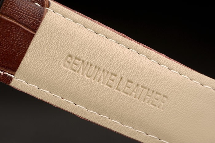 Bracelet: Cartier heat embossed brown crocodile leather strap with rose-gold plated buckle clasp